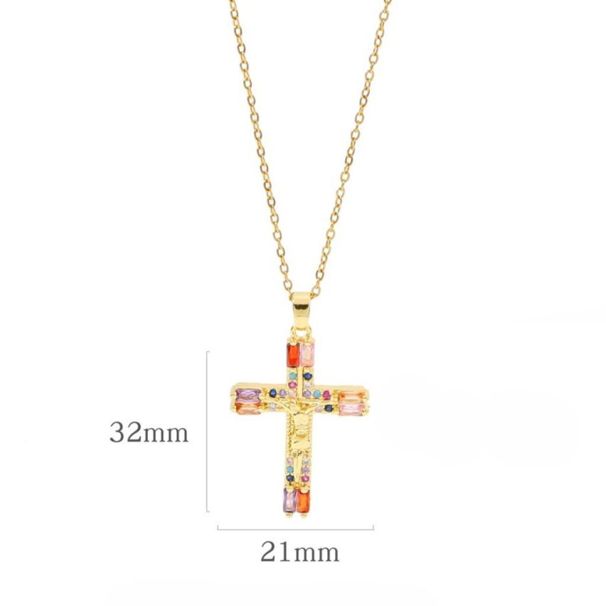 S.Steel Gold Plating Colorfull Zircon Cross Women-c