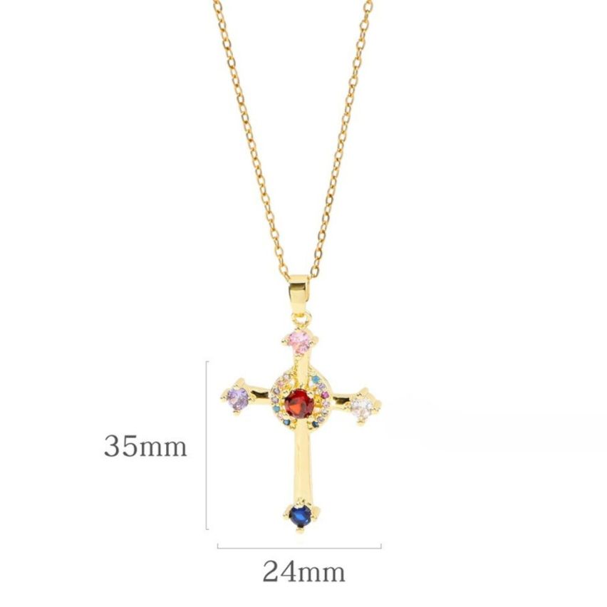S.Steel Gold Plating Colorfull Zircon Cross Women-c