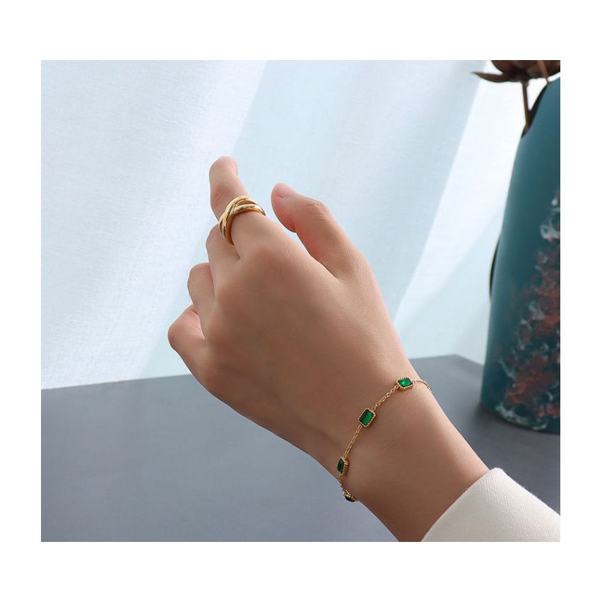 Gold Plating S.Steel and Green Zircon Minimalist Bracelet