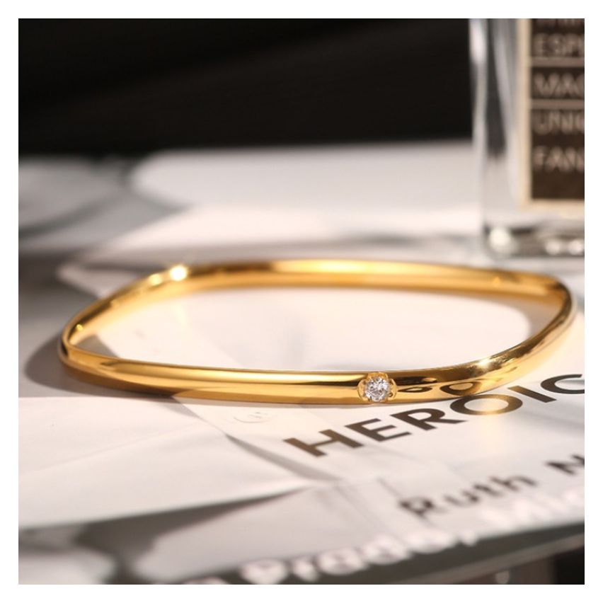 Gold Plating Titanium Steel and White Zircon Smooth Bangle