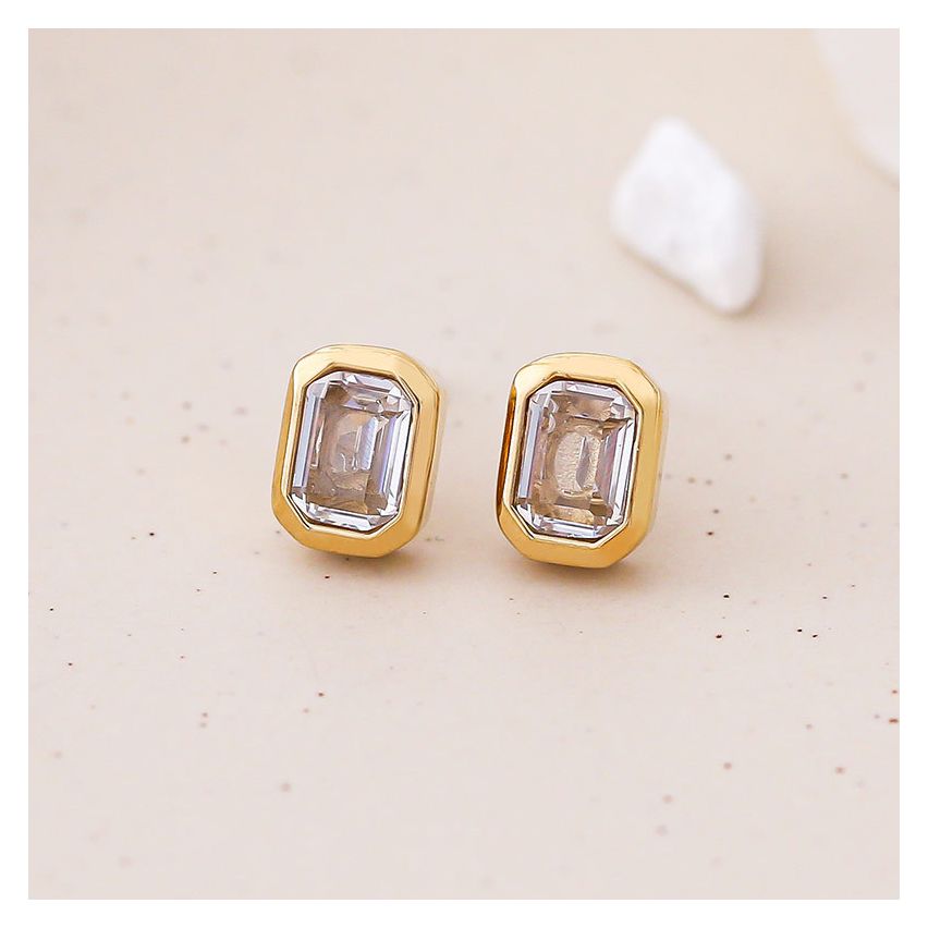 CLASSIC S.Steel Gold Plating Zircon Stud Women