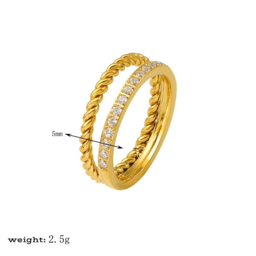 S.Steel Gold Plating Green Glass stone Smooth Women-c 26g EU52 - ES12 - US6