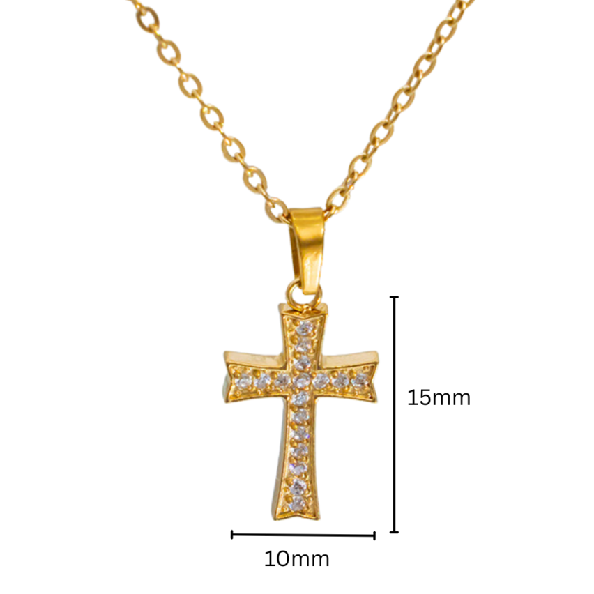 S.Steel Gold Plating Zircon Cross Women-c