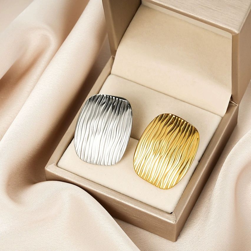 S.Steel Gold Plating Glass stone Smooth Women-c 6g 25x15mm