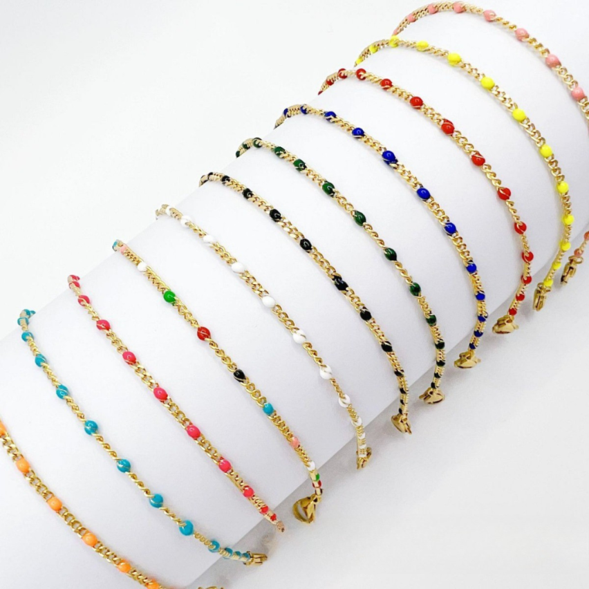 S.Steel Gold Plating Lake blue Enamel Minimalist Women-c 3.5g 210x2.1mm