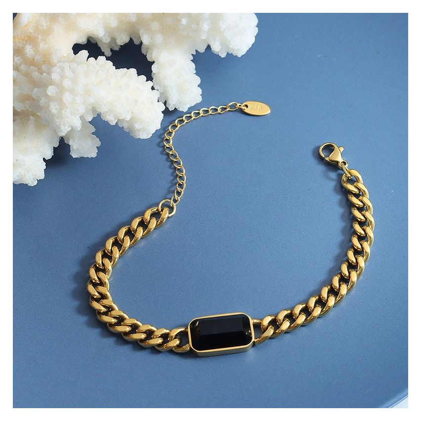 Gold Plating Titanium Steel and Black Glass stone Chain link Bracelet