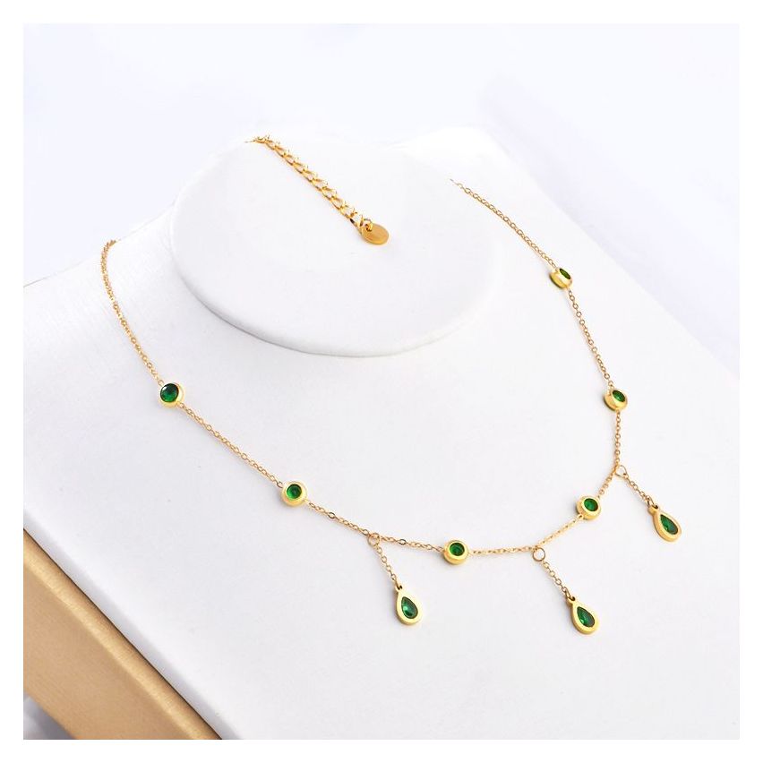 S.Steel Gold Plating Green Zircon Women-c 3.57g