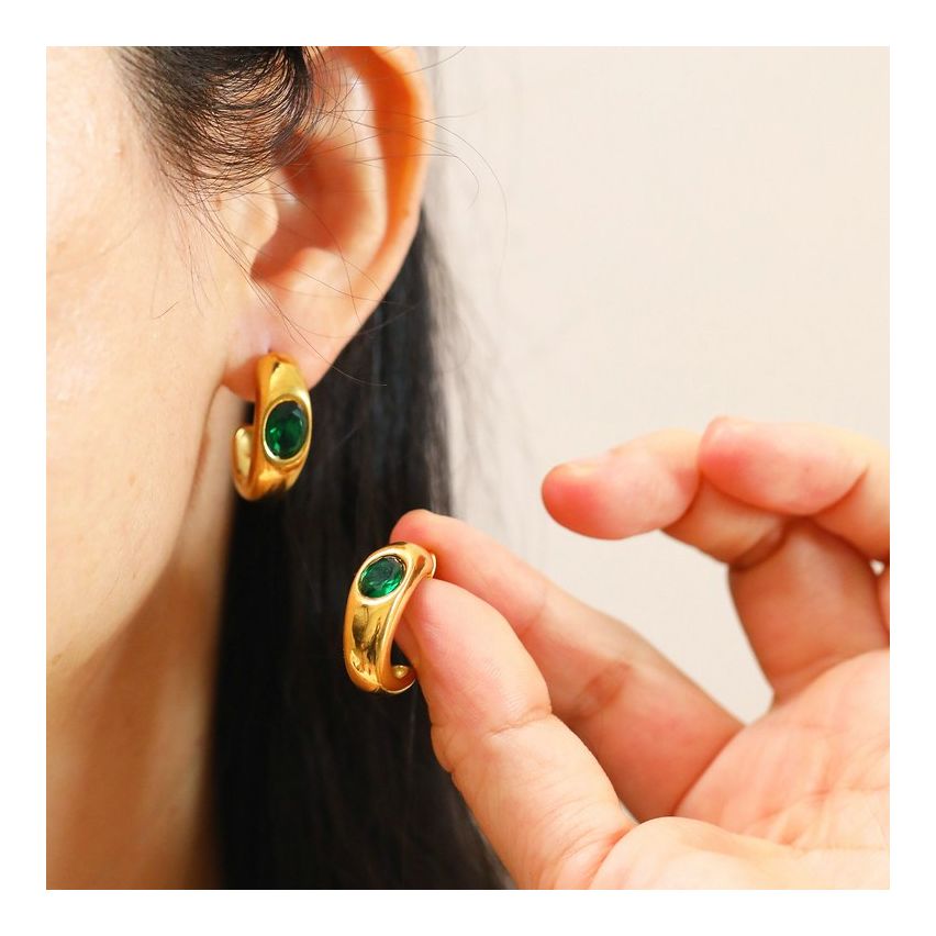 S.Steel Gold Plating Hoop Women-c 8g 22x18mm