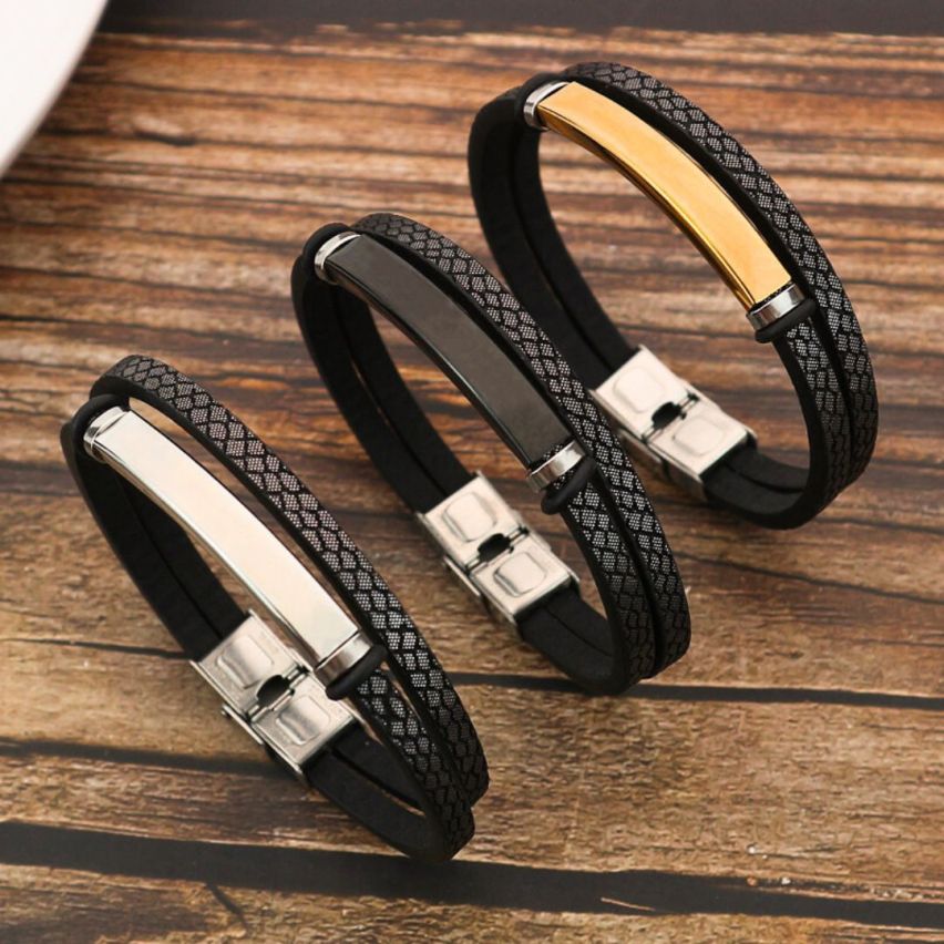 S.Steel Gold Plating Leather Men-c