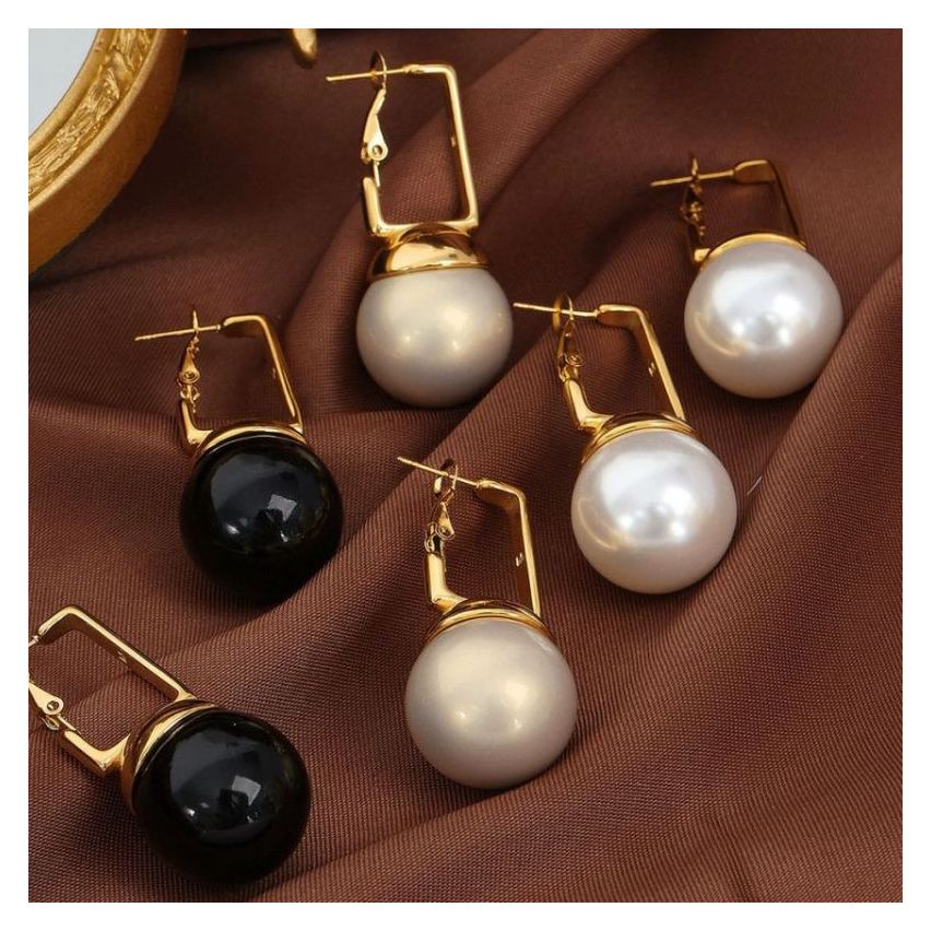 Gold Plating S.Steel and White Pearls Earrings