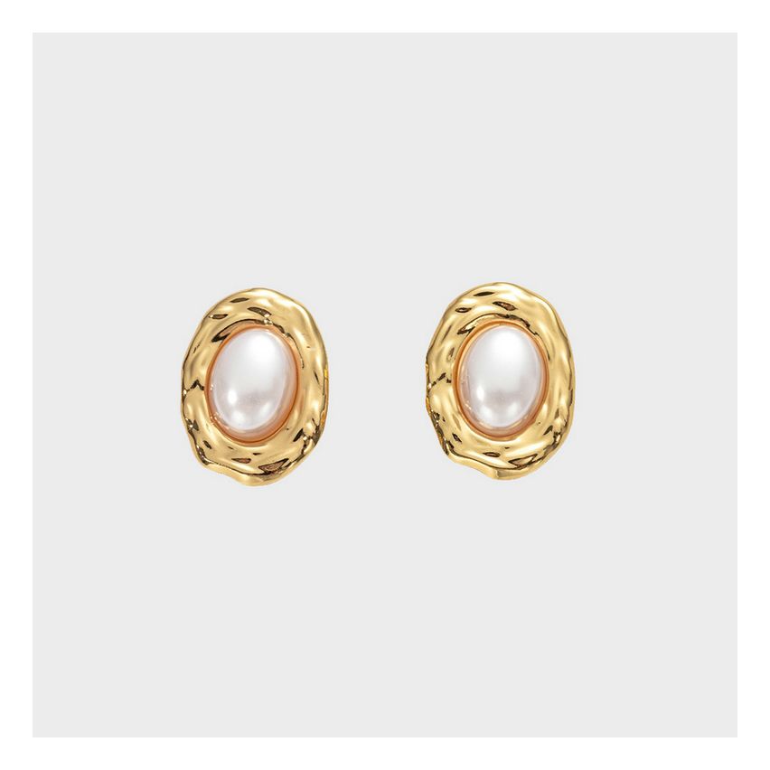 Gold Plating S.Steel and White Pearls Earrings