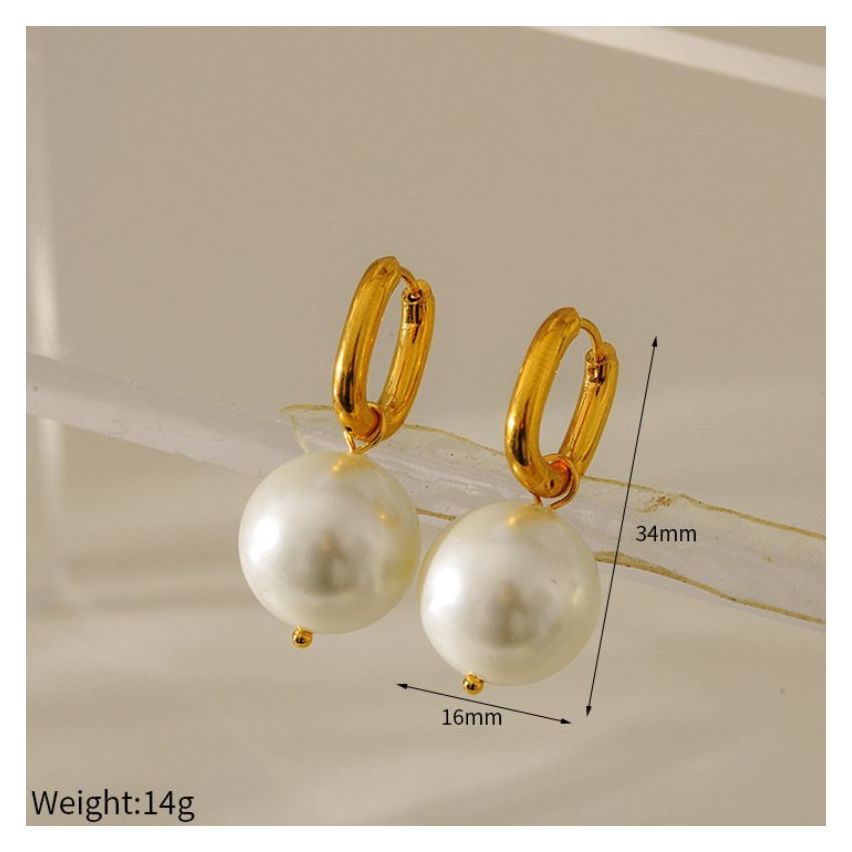 Gold Plating S.Steel and Shell Bead Pearls Earrings