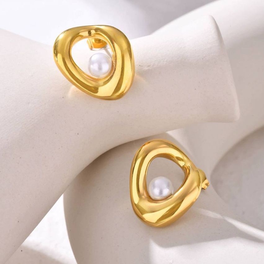 Gold Plating S.Steel and Shell Bead Pearls Earrings