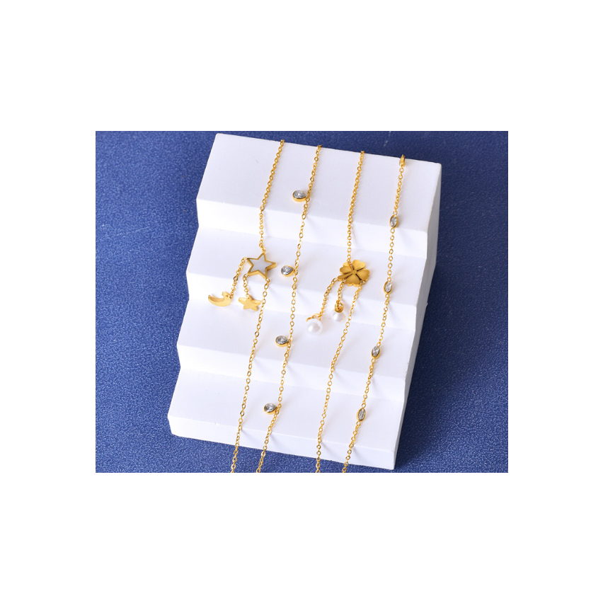 ESSENTIAL S.Steel Gold Plating Shijia pearl Anklets Women-c
