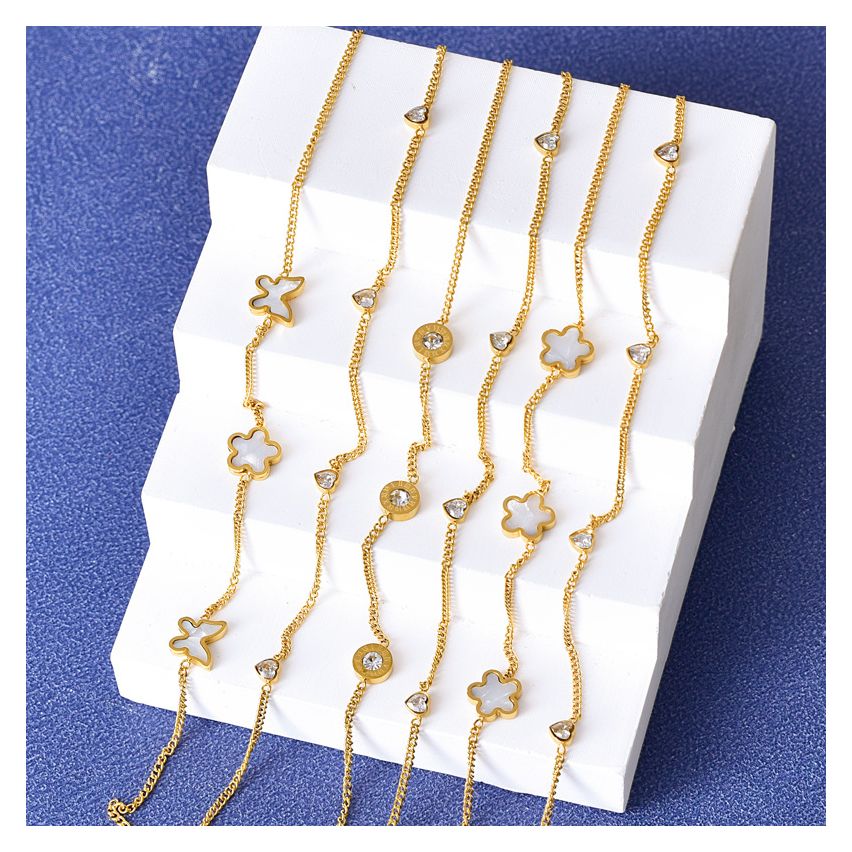 S.Steel Gold Plating Zircon Anklets Women-c 3.7g