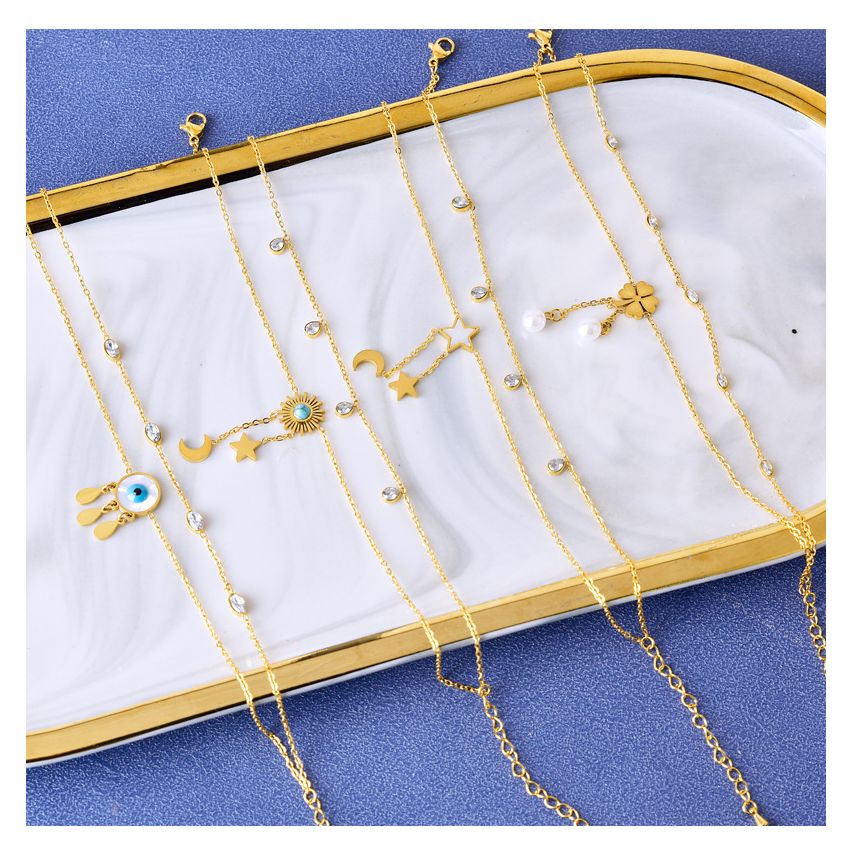 ESSENTIAL S.Steel Gold Plating Zircon Anklets Women