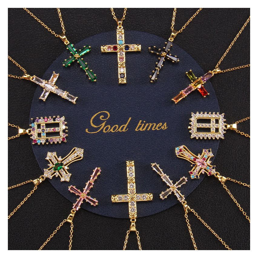 S.Steel Gold Plating Colorfull Zircon Cross Women-c 10g