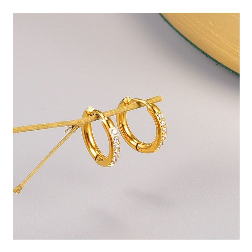 S.Steel Gold Plating Zircon Hoop Women-c 2.4g