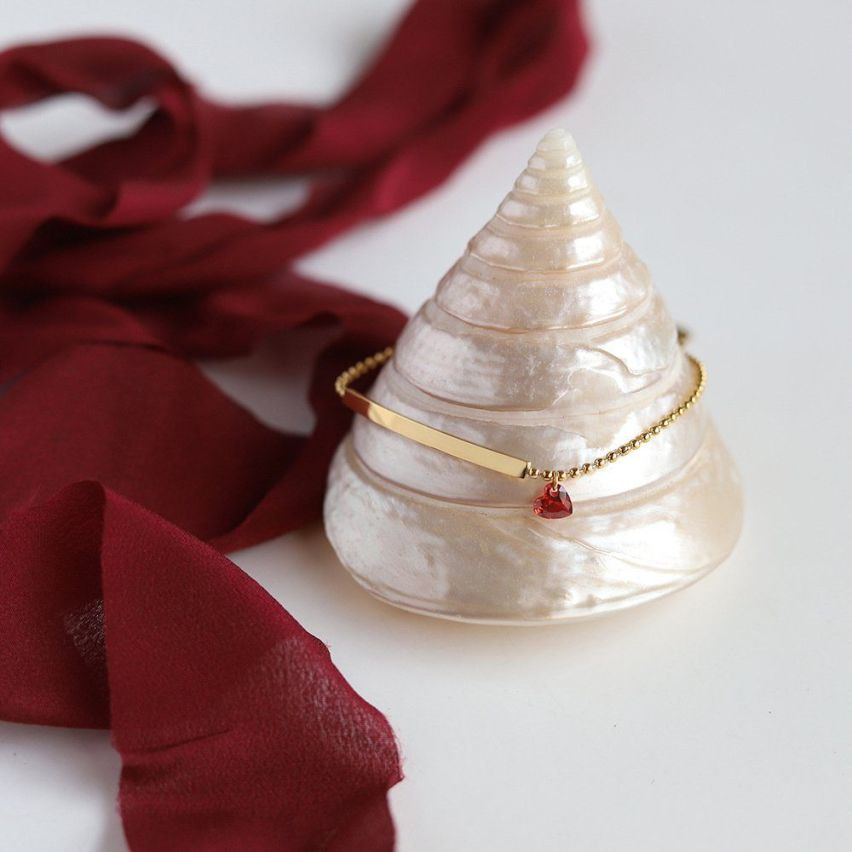 Gold Plating S.Steel and Red Zircon With Plate Bracelet