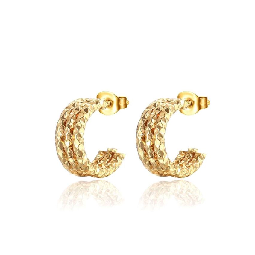 S.Steel Gold Plating Texture Women-c 11g 20x19mm
