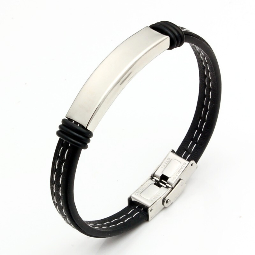 S.Steel Leather With Plate Men-c 20g