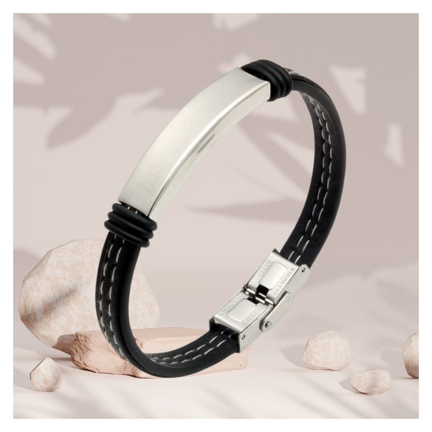 ESSENTIAL S.Steel Leather With Plate Men 20g