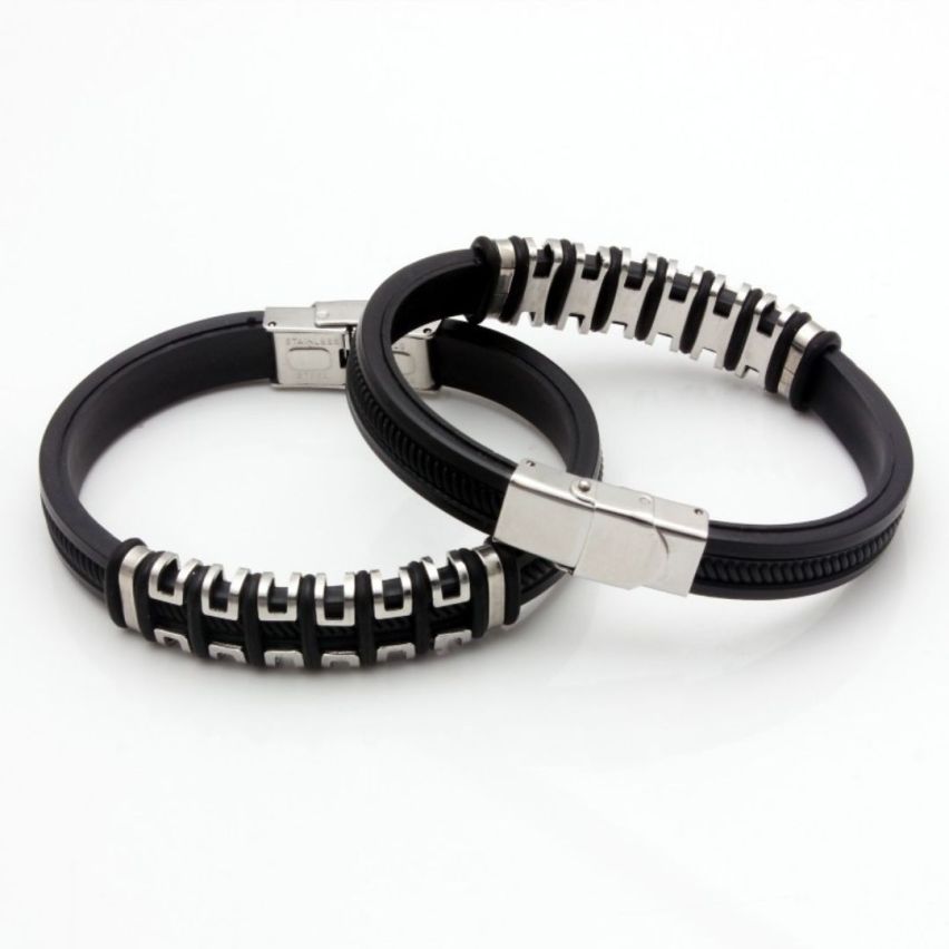 ESSENTIAL S.Steel Silicone Black Leather Men 20g