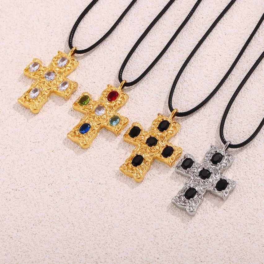 S.Steel New Gold Plating Glass stone Cross Women-c 15.3g 470+50x2mm