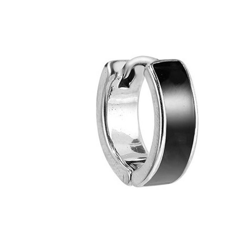 Shiny S.Steel and Black Enamel Hoop Earrings