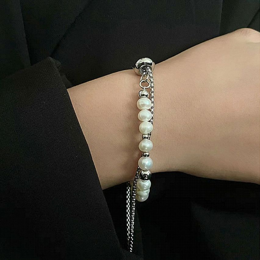 Shiny Titanium Steel and Freshwater pearl Pearls Bracelet