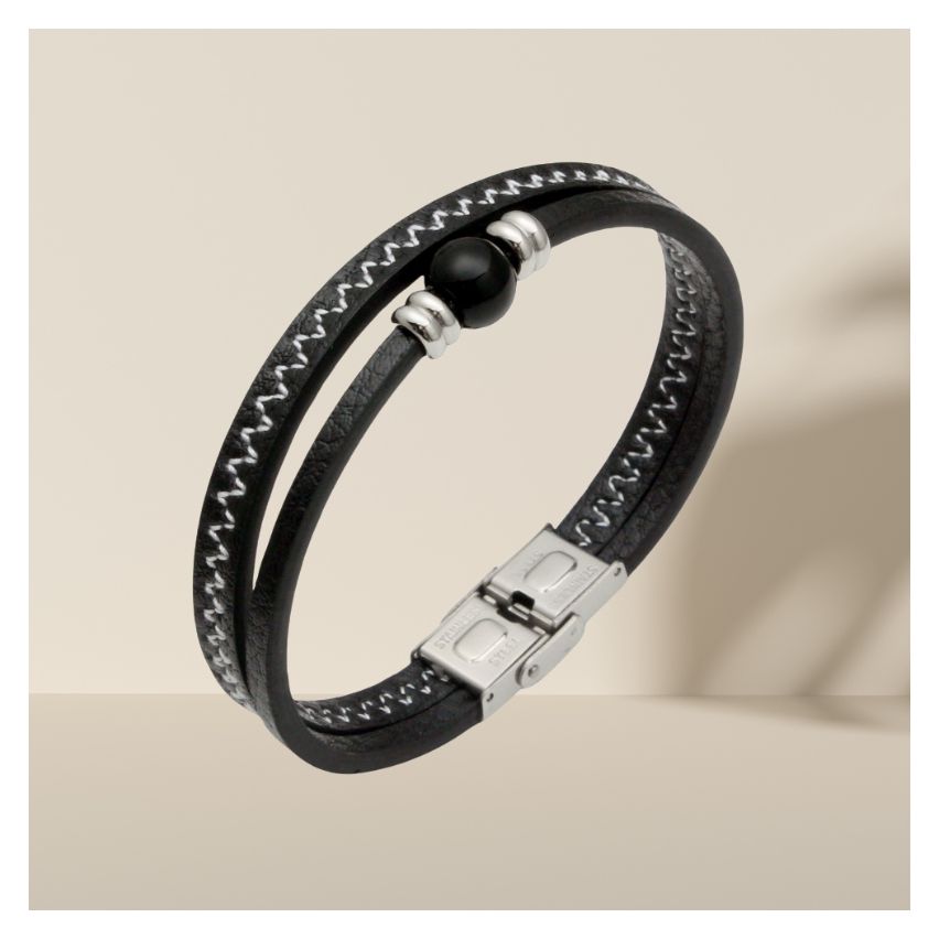 S.Steel white Stitched Leather Men-c 20g