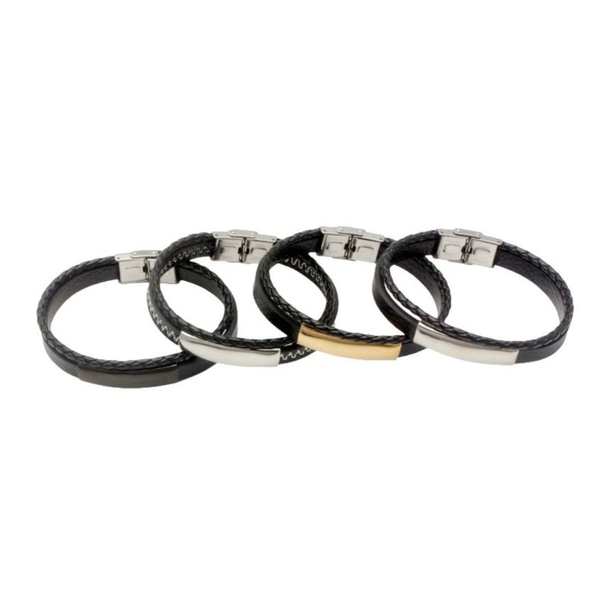 S.Steel White Stitching Leather With Plate Men-c